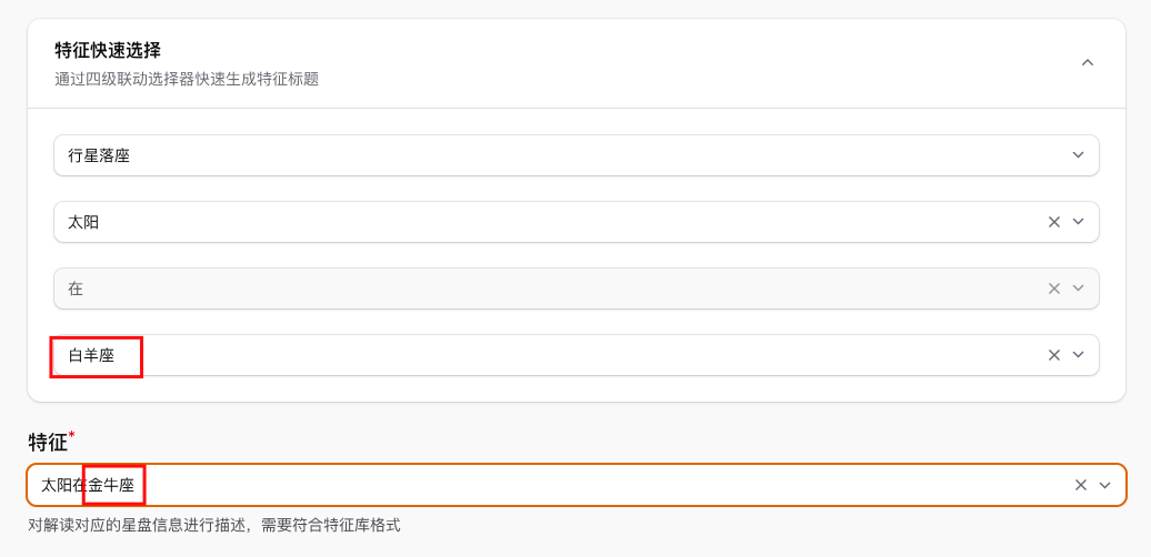 举例:当下图情况发生时,系统会将解读匹配给太阳在金牛座的档案