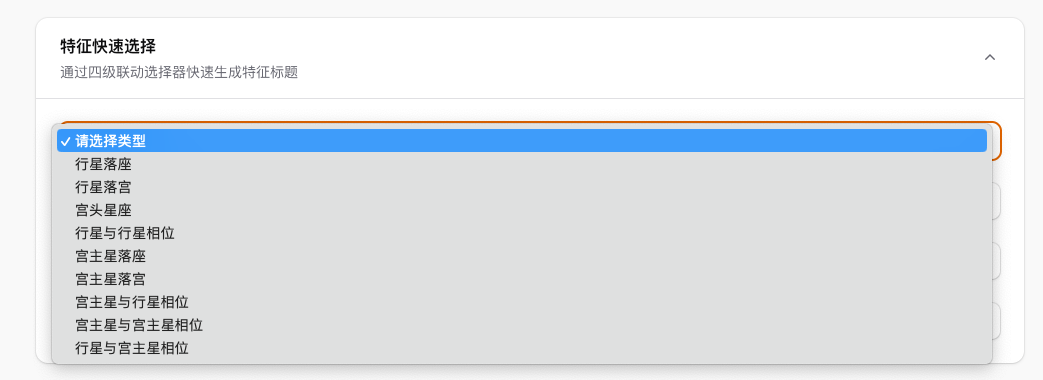 首先确定本条解读对应哪种星盘,在下拉菜单中选择相应选项。