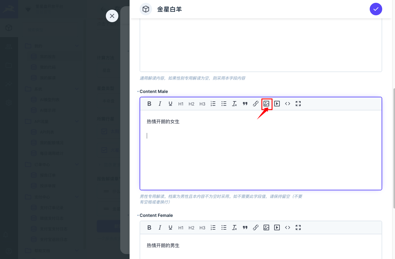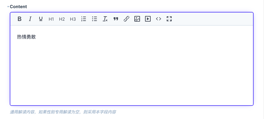 解读内容:当条件匹配时,向用户展示的最终文字。您可以选择通用解读(只填写第一个框)或区分男女的解读(填写后两个框)。 通用版:
