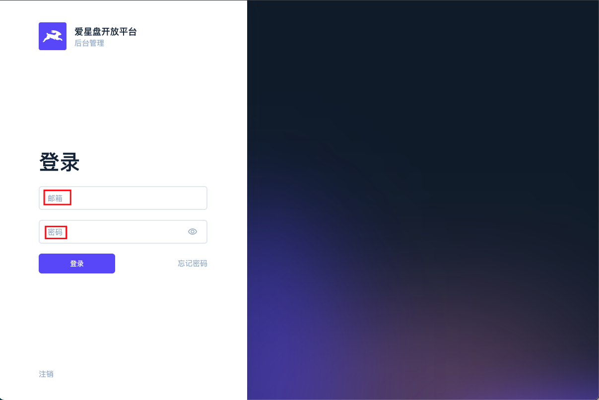 1.访问爱星盘开放平台后台登录页:https://cms.astro.ink/admin/login,输入您注册时用的邮箱和密码登录。